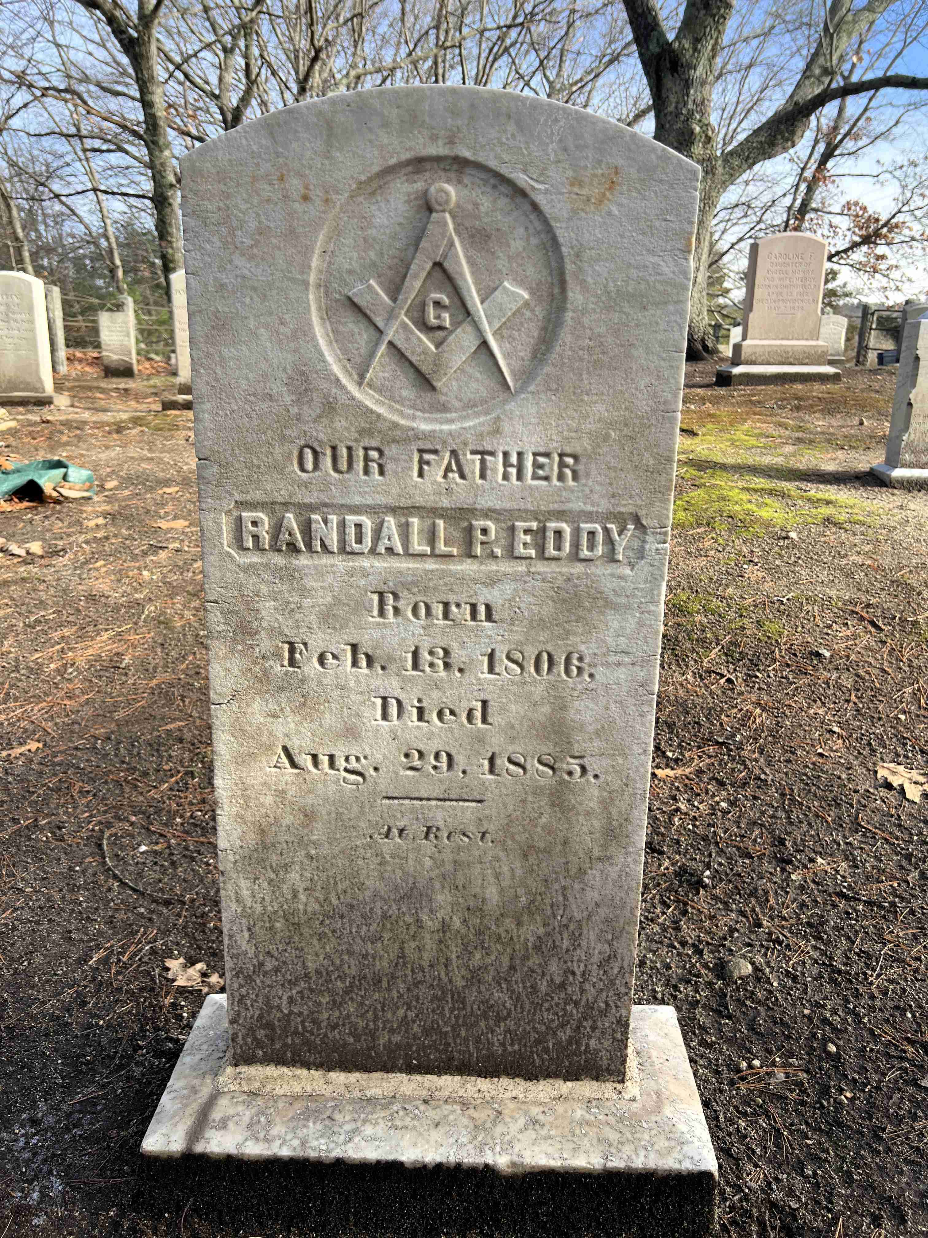 Ref 4 NOTE: Name is on two separate stones, the second being at map #45 (stone data: G-G-R-U---1-9 X 21) died: N SMITHFIELD, RI