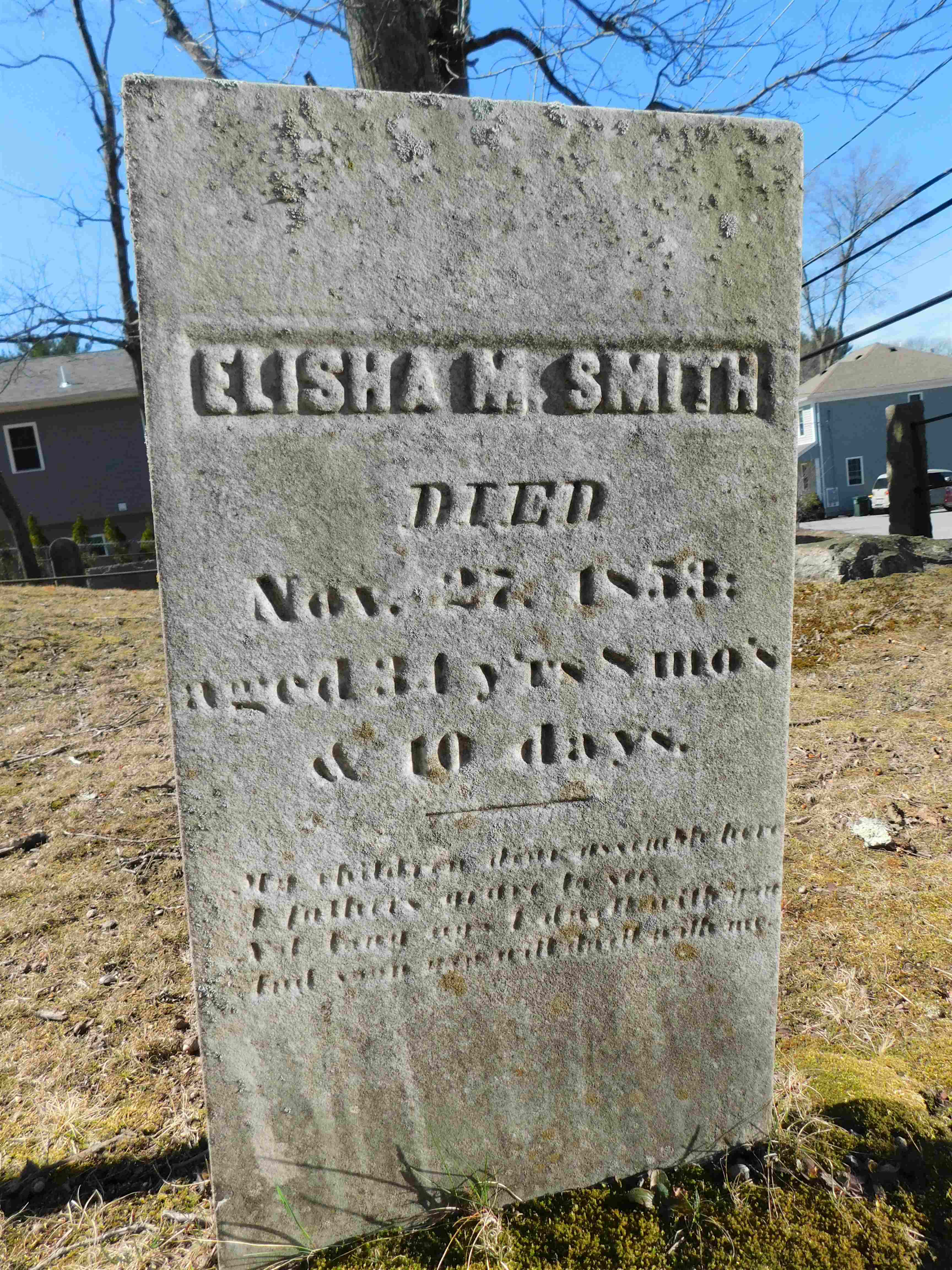 ---GGT transcribed a stone for Elisha s/o Thomas & Sarah with no dates. Parents listed on reverse of this stone.