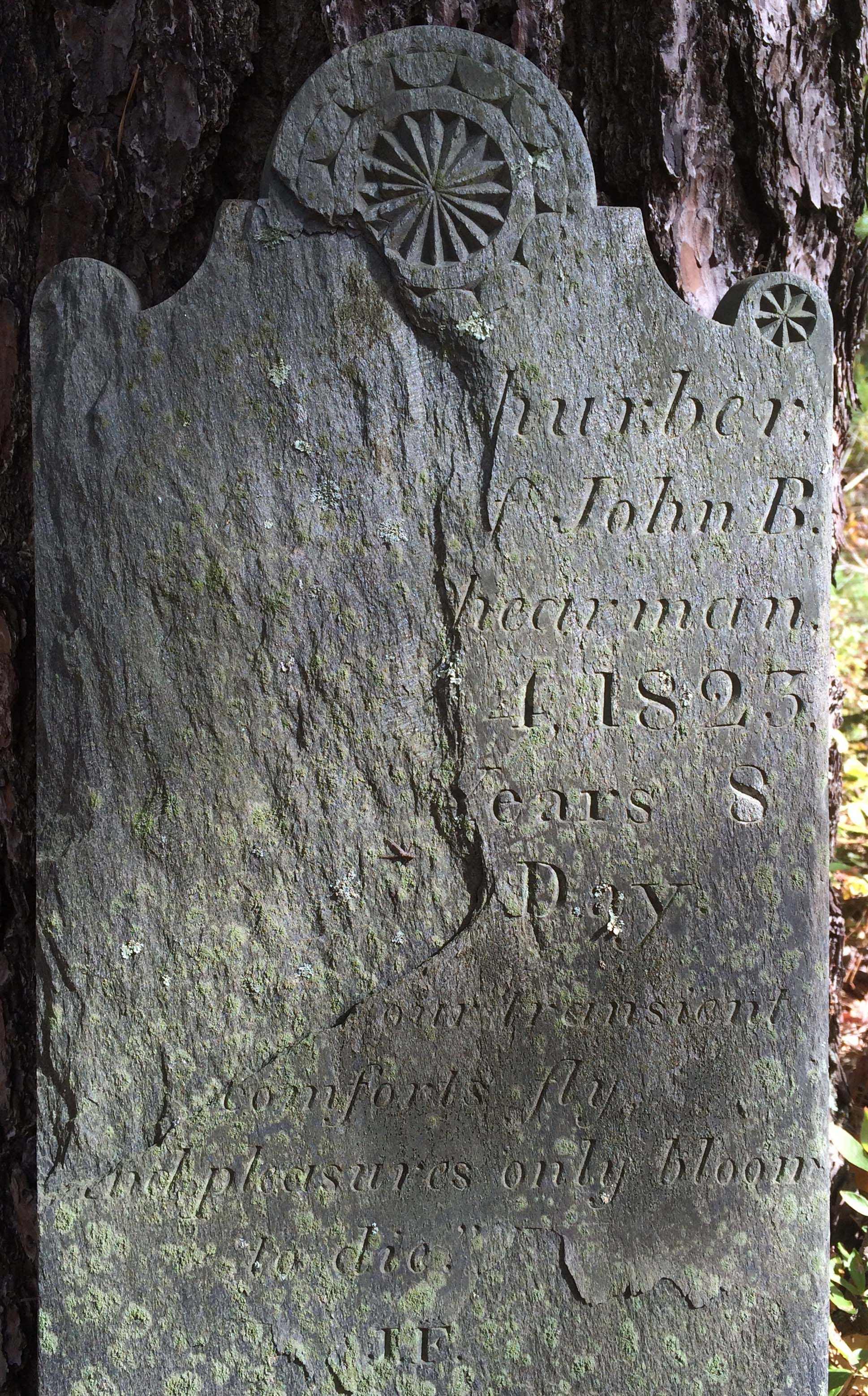 rosette carving on top of stone. Left half of stone not readable in 1992, stone delaminating.