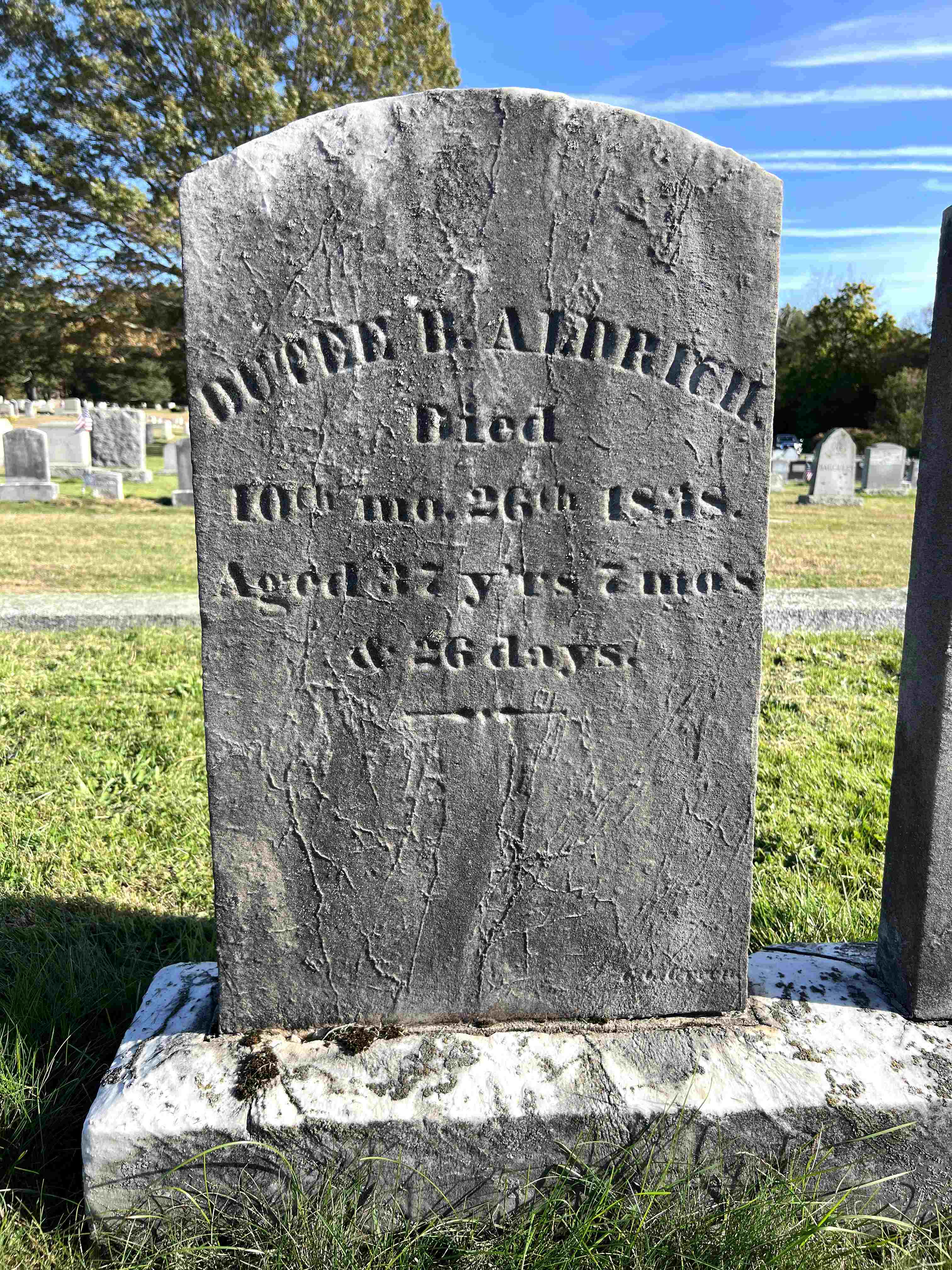 One of two stones on a common base QUAKER STYLE DATE