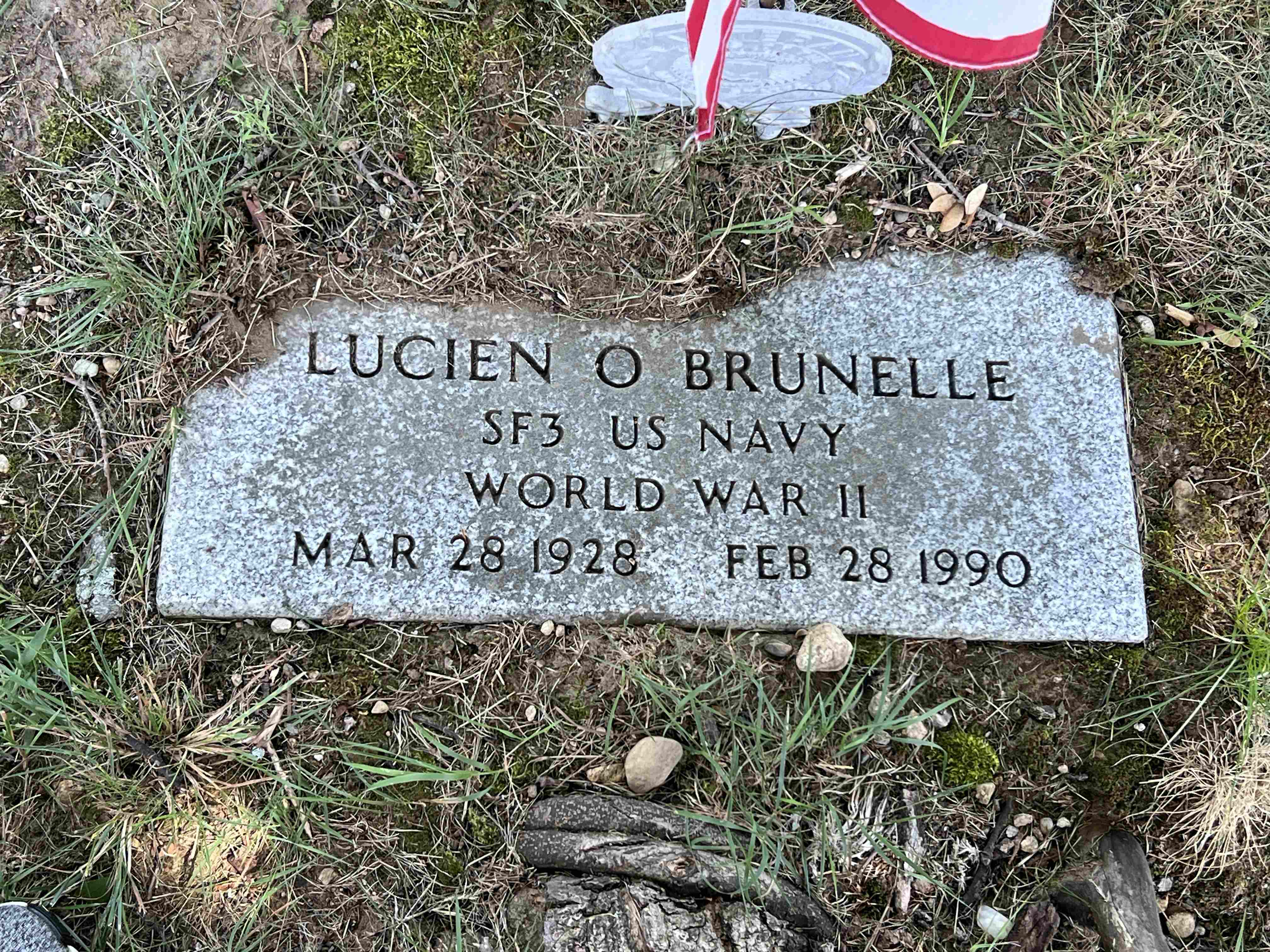 Government footstone, "SF3, US Navy, World War II." Ref 1 NOTE: Lot # in records is listed as 1128C & 1129A