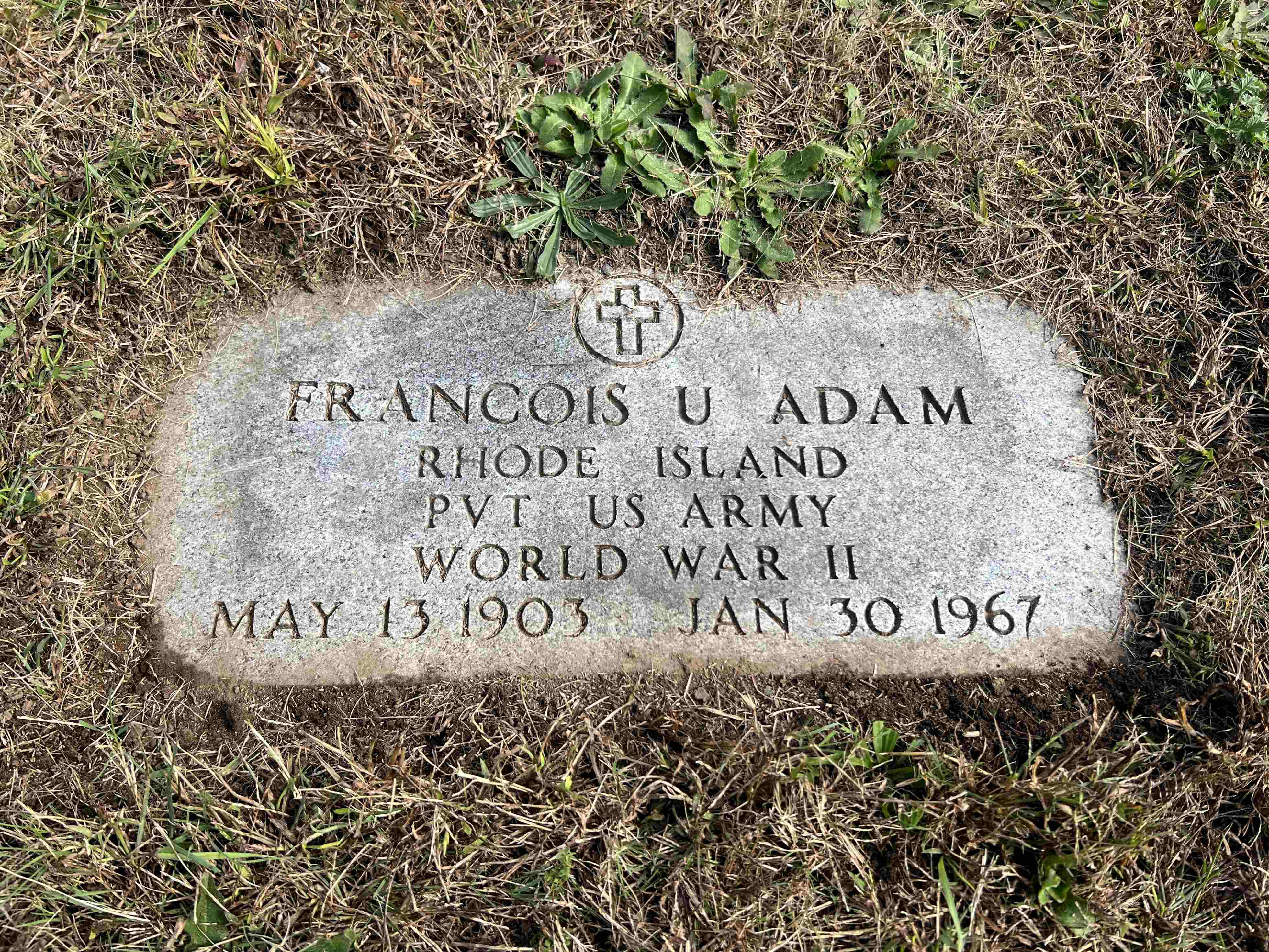 Govt. footstone. "Rhode Island, Pvt., U.S. Army"