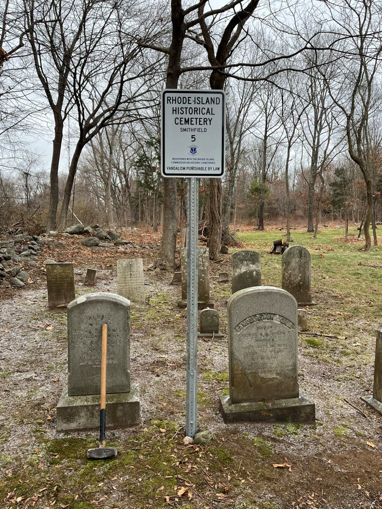 "On the next farm north of the Judge D Mowry farm, a burial yard in sight of road, no protection, lot in good order."